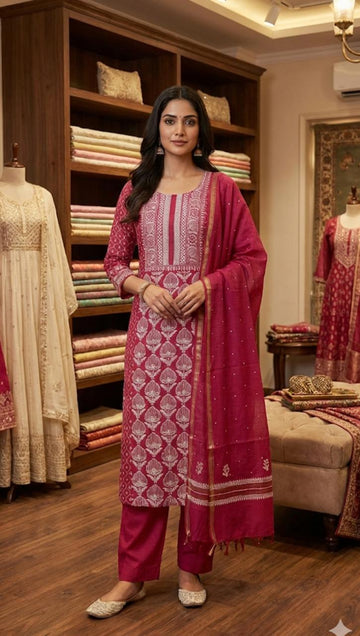 Description: Invest in timeless tradition with this Hot Pink Mal-Chanderi Chikankari Suit for Women, expertly...