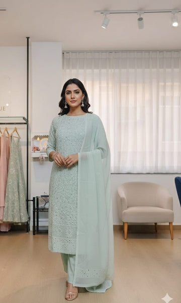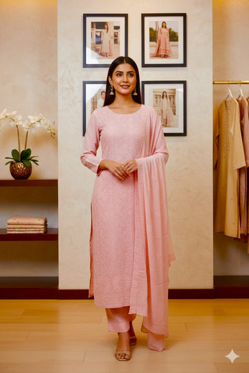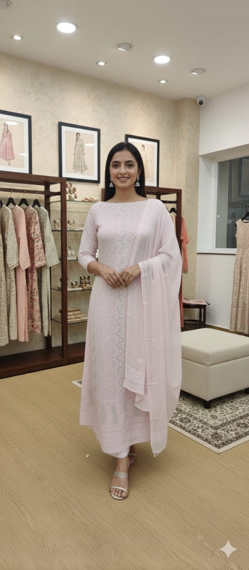 Description: Timeless Elegance Crafted on Georgette Chikankari suit done in Pink shade . Ideal for...
