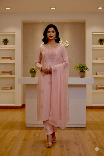 Description: Timeless Elegance Crafted on Georgette Chikankari suit done in Pink shade . Ideal for...