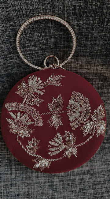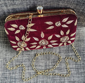 Description: 🌺 Maroon Velvet Clutch The Maroon Velvet Clutch exudes royal charm and festive richness....