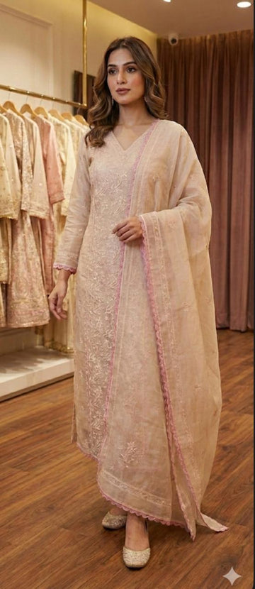 Description: Elevate your ethnic wardrobe with this Hazelnut Organza Chikankari Suit for Women from the...