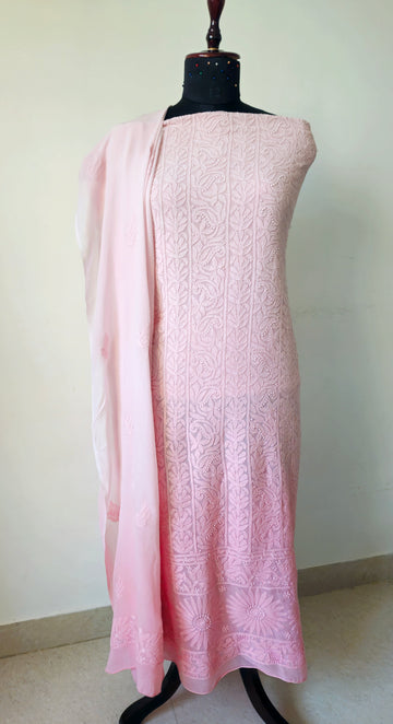 Description: 1. Ombrey Pink pure Georgette suit with shadow work.2. Beautiful back butta.3. Georgette Ombrey...