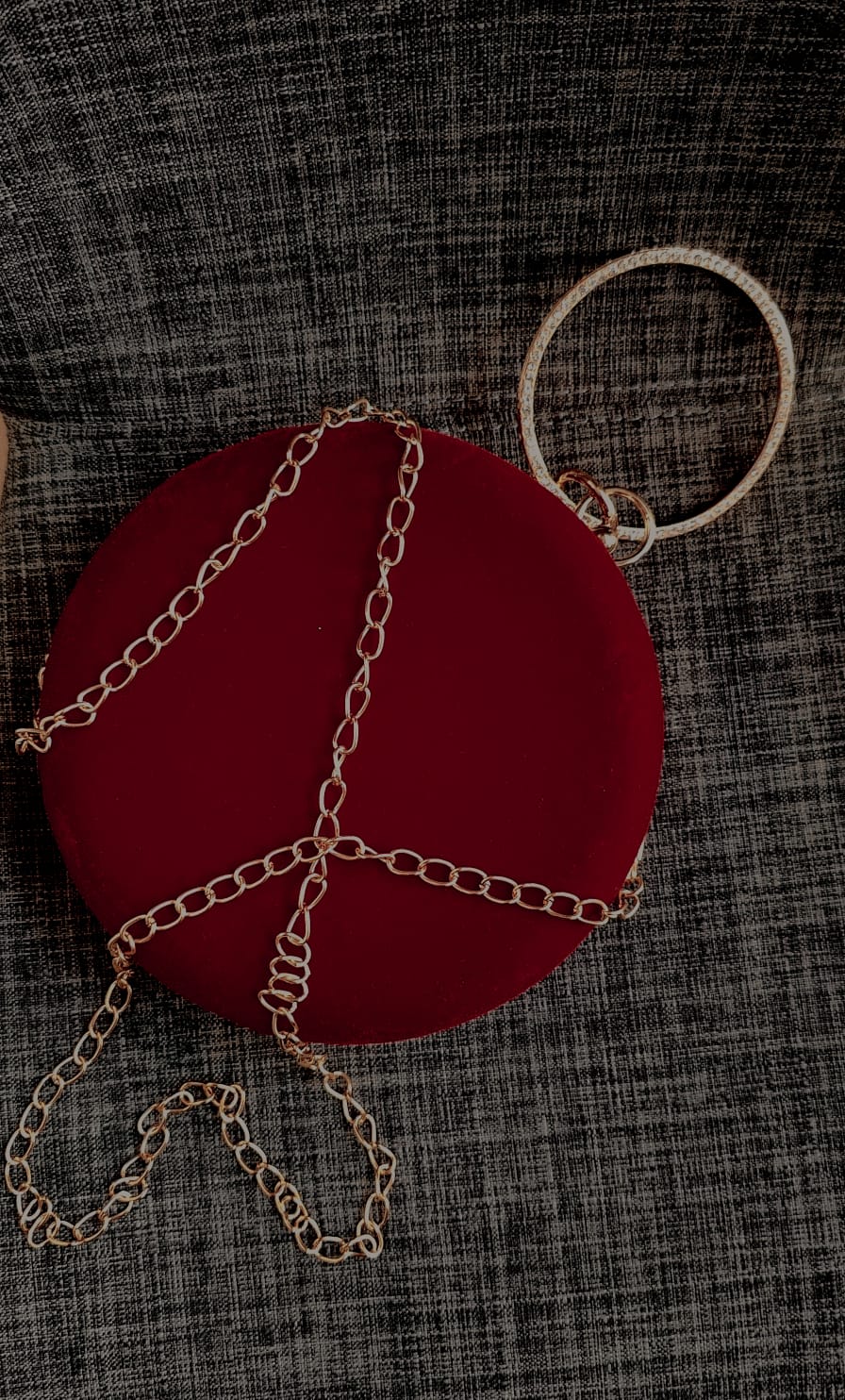 The Maroon Velvet Clutch exudes royal charm and festive richness. Its luxurious silk surface is enhanced with a diamond-stone embellished metal clasp and a detachable chain sling. Lightweight yet spacious, it blends tradition with modern elegance—ideal for weddings, festivals, and celebratory events.