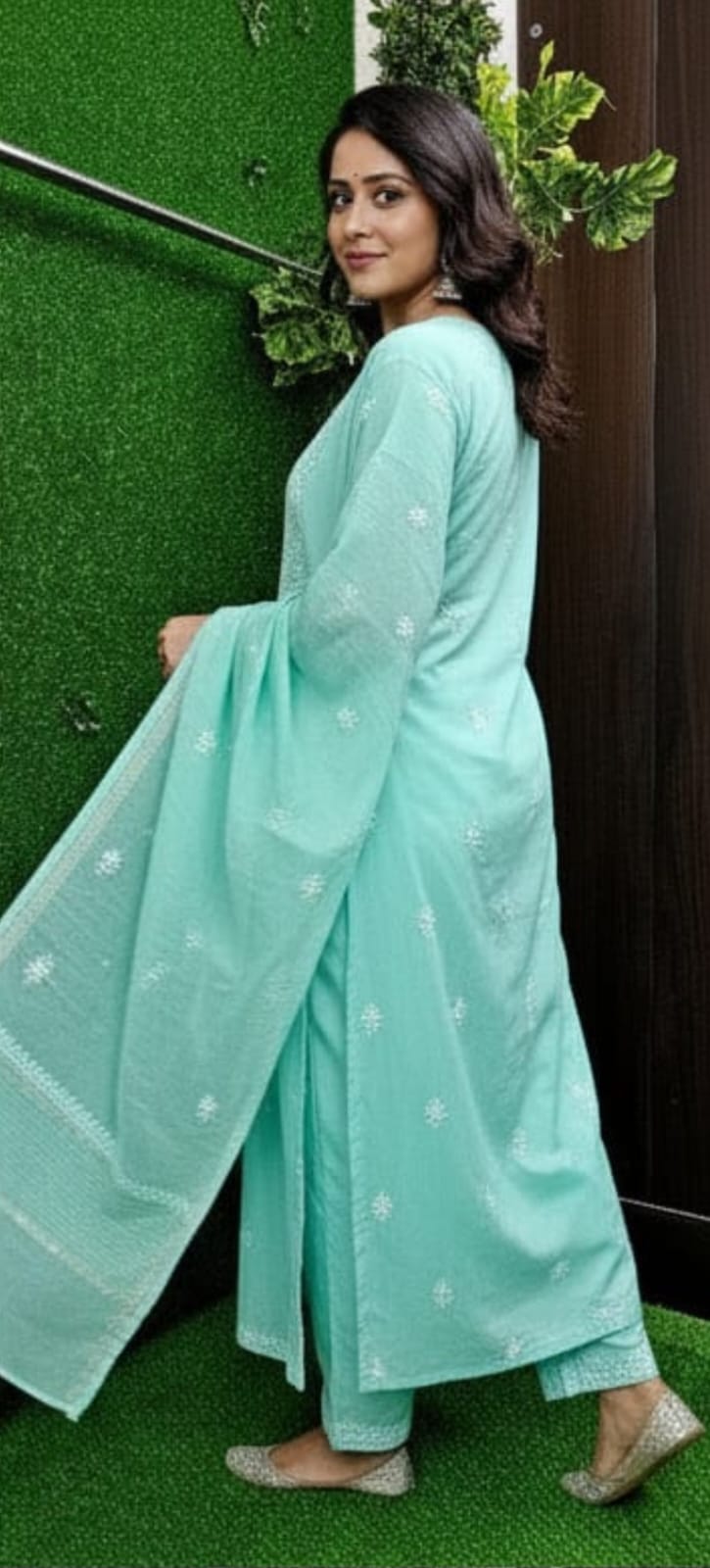 There can be slight variation in embroidery as every single piece is handmade. There may be 10–15% difference in colour as the screen/display settings of every phone differs.