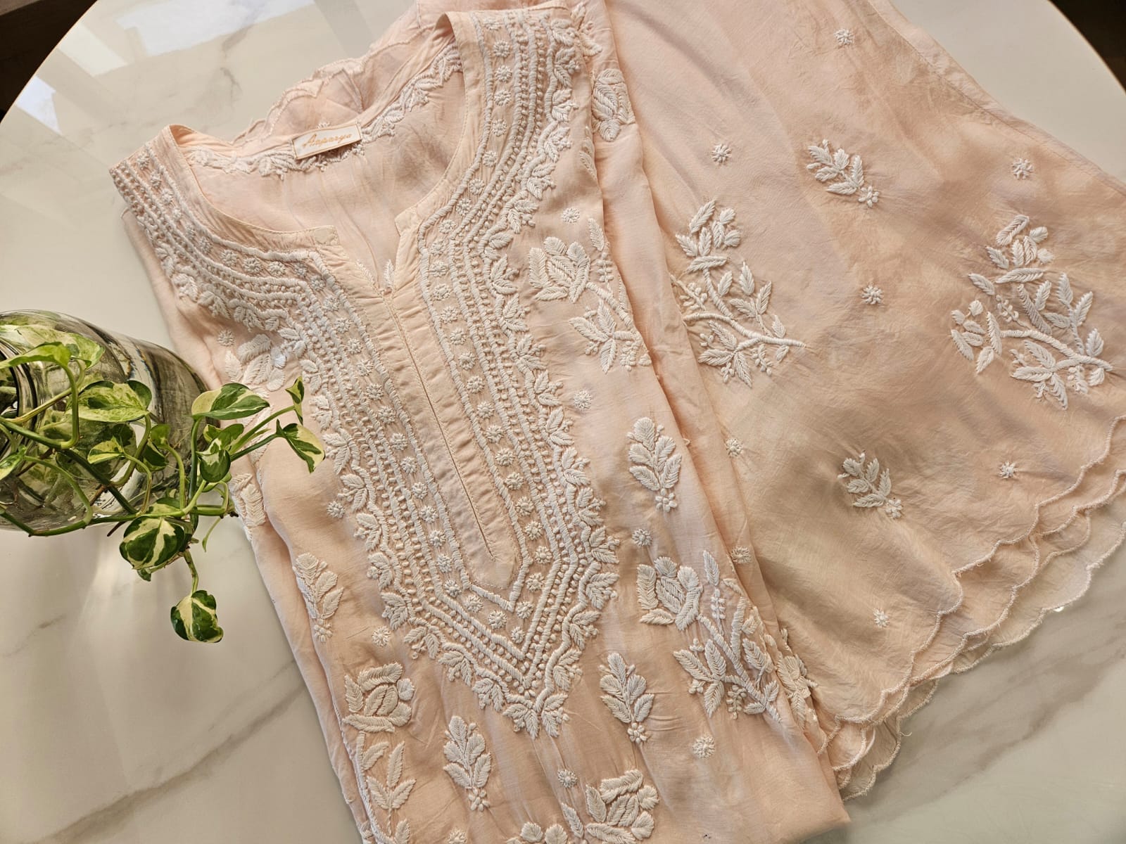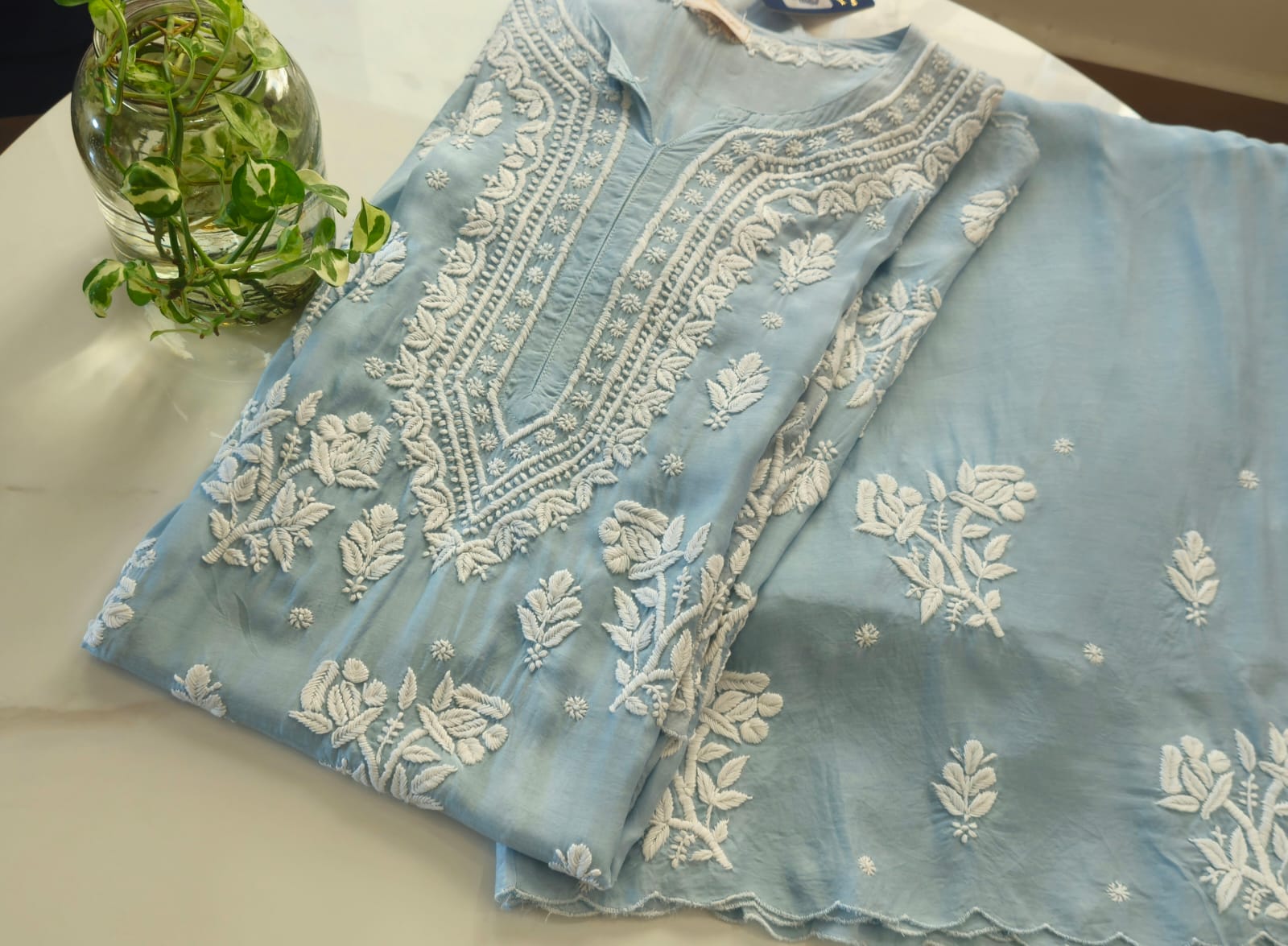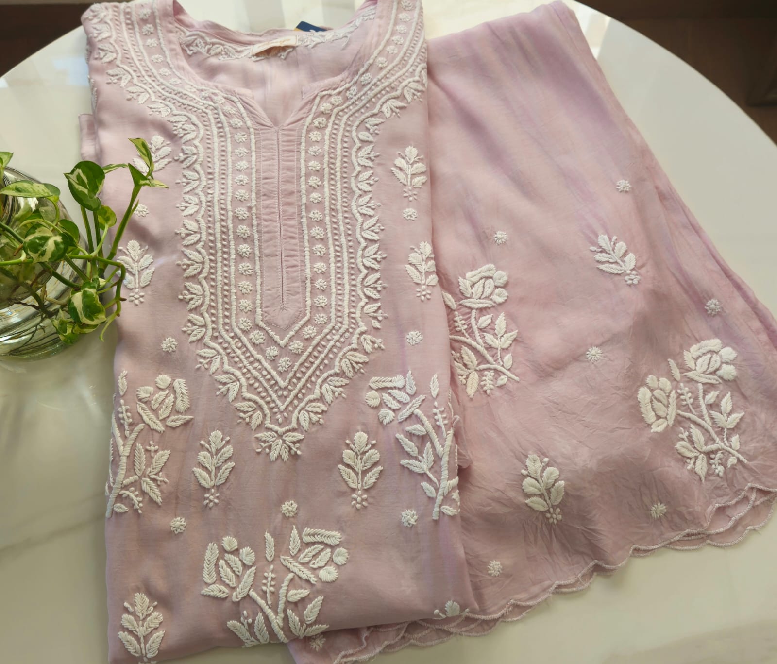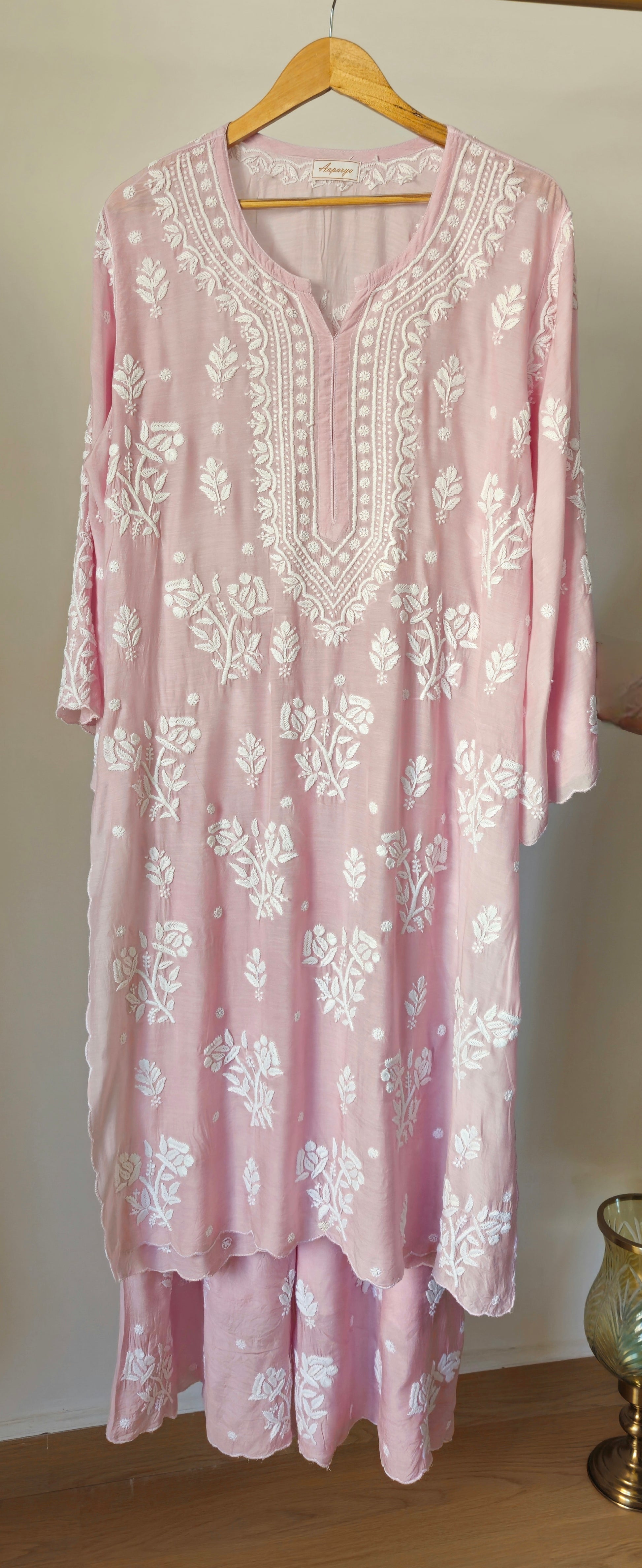 Aaparya presenting Plazzo set in Pure Muslin fabric with Chikankari work . It is available in Lavender , Baby peach and Ocean Blue .