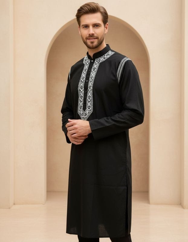 The kurta showcases refined thread textures that offer a classic handcrafted feel, paired with a comfortable pajama for all-day ease.