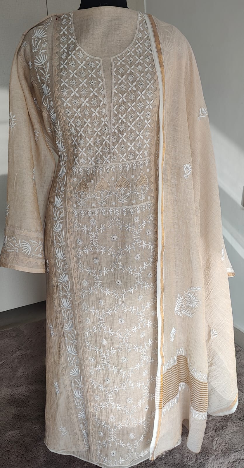 There can be slight variation in embroidery as every single piece is handmade. There may be 10–15% difference in colour as the screen/display settings of every phone differs.